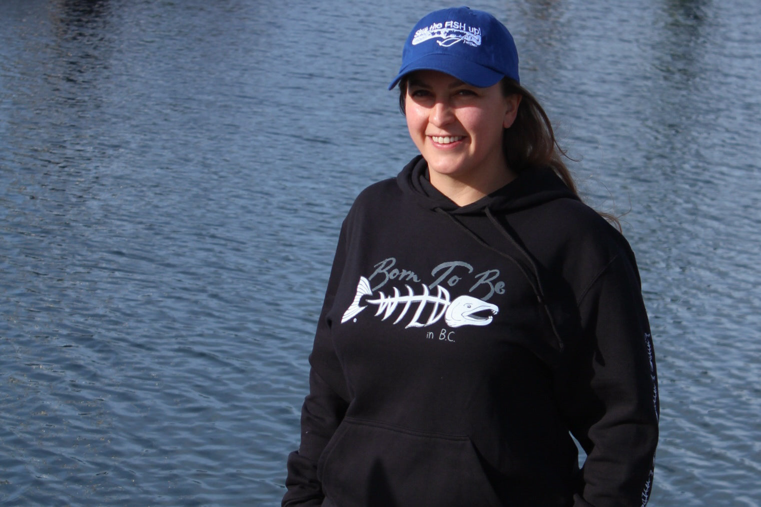 To inspire conversation about the importance of Wild Salmon, I created the TM logo seen here, (on two of my favourite humans) in which the bones of the fish spell "WILD"