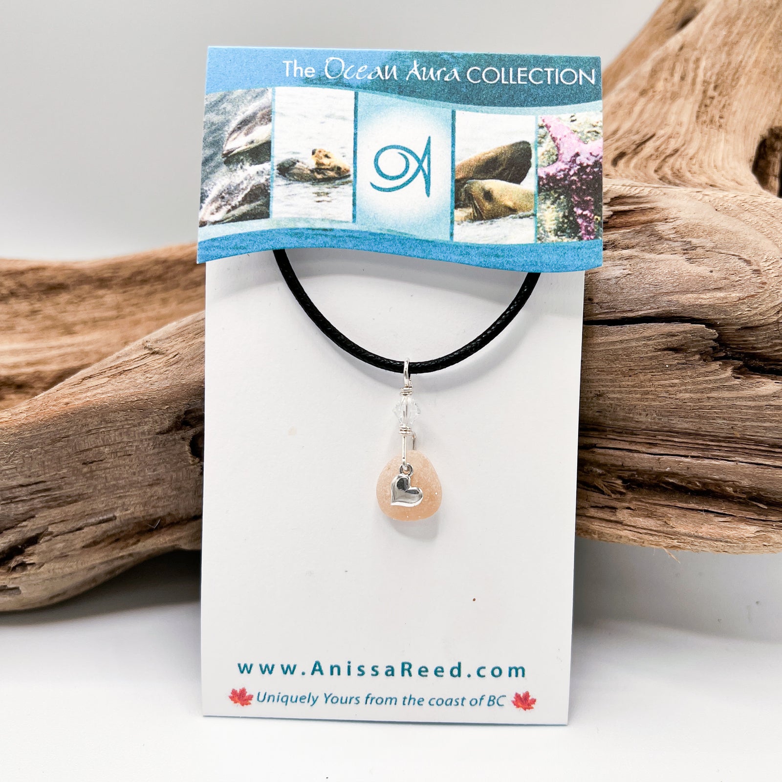 Sea Glass Pendant - Frosted Peach with Heart Charm * Rare