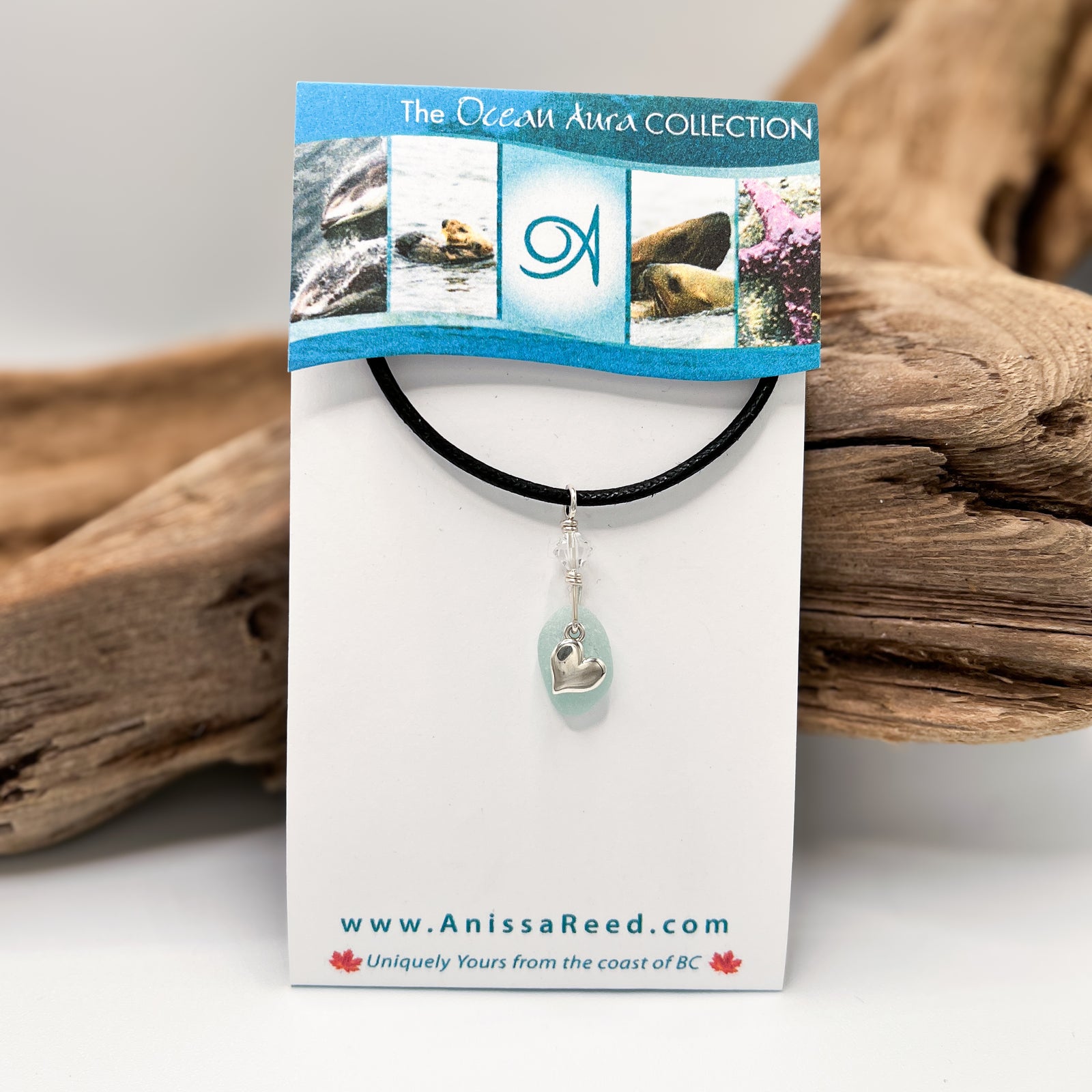 Sea Glass Pendant - Uncommon Bright Seafoam with Heart Charm