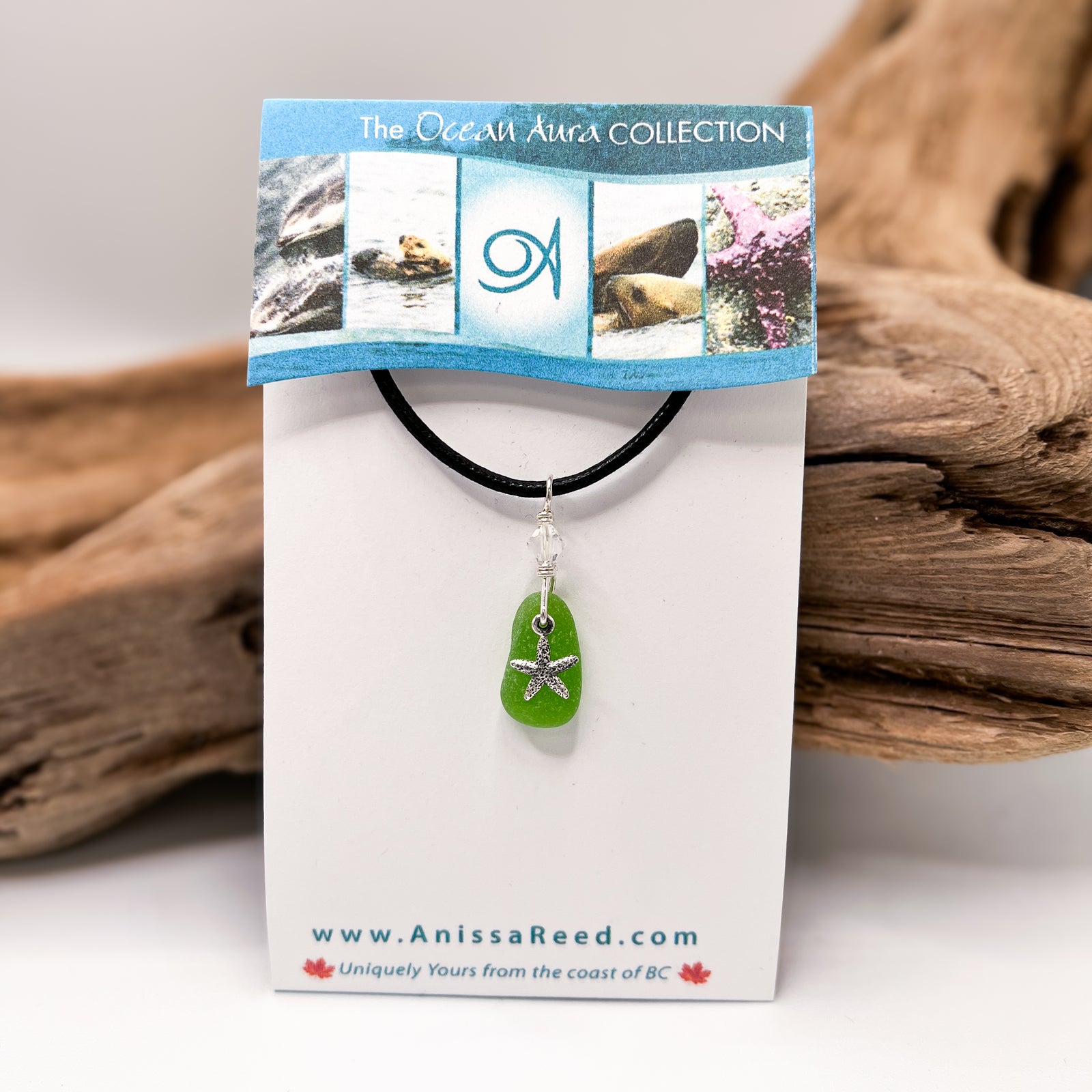 Sea Glass Pendant - Frosty Lime with Starfish Charm