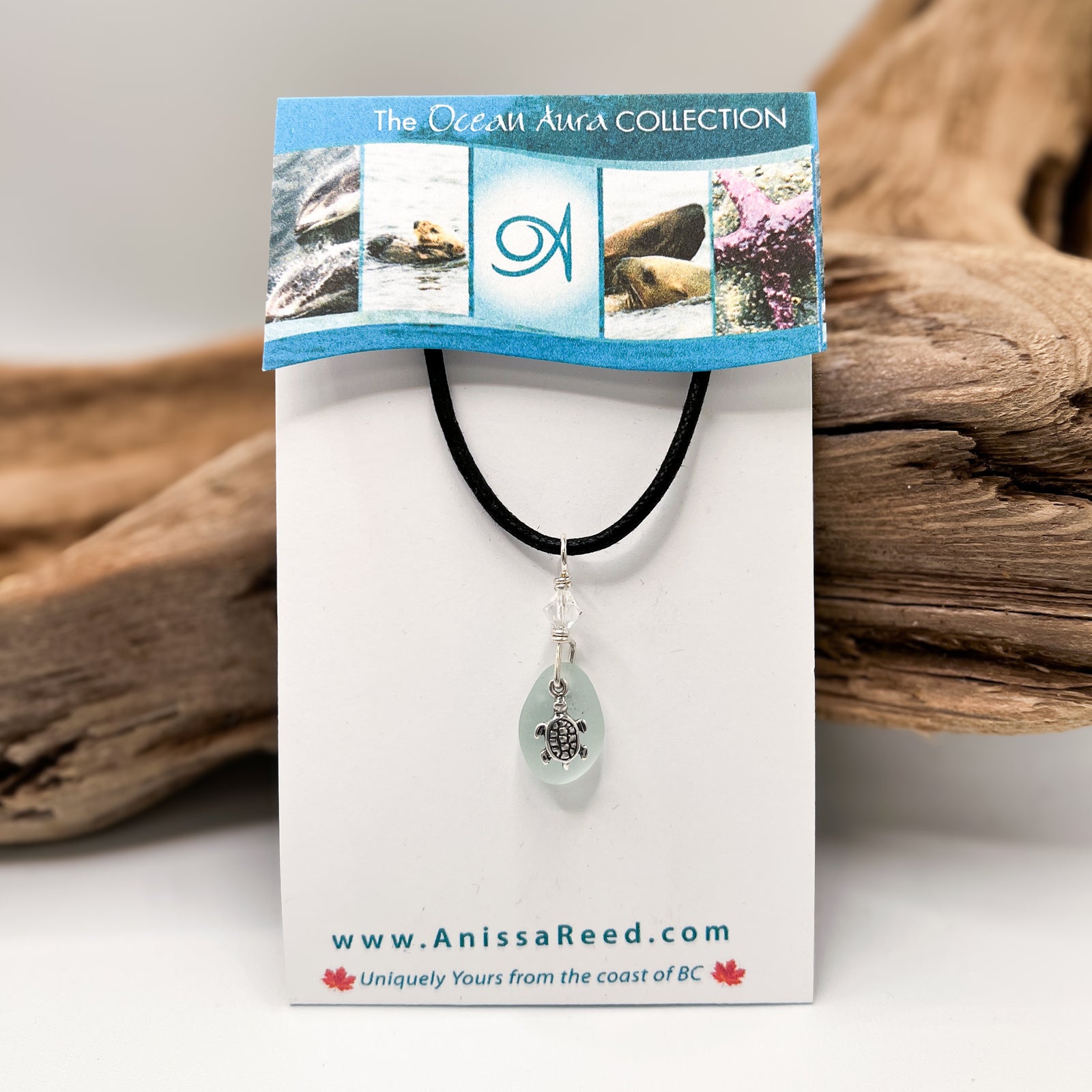 Sea Glass Pendant - Soft Blue with Turtle Charm