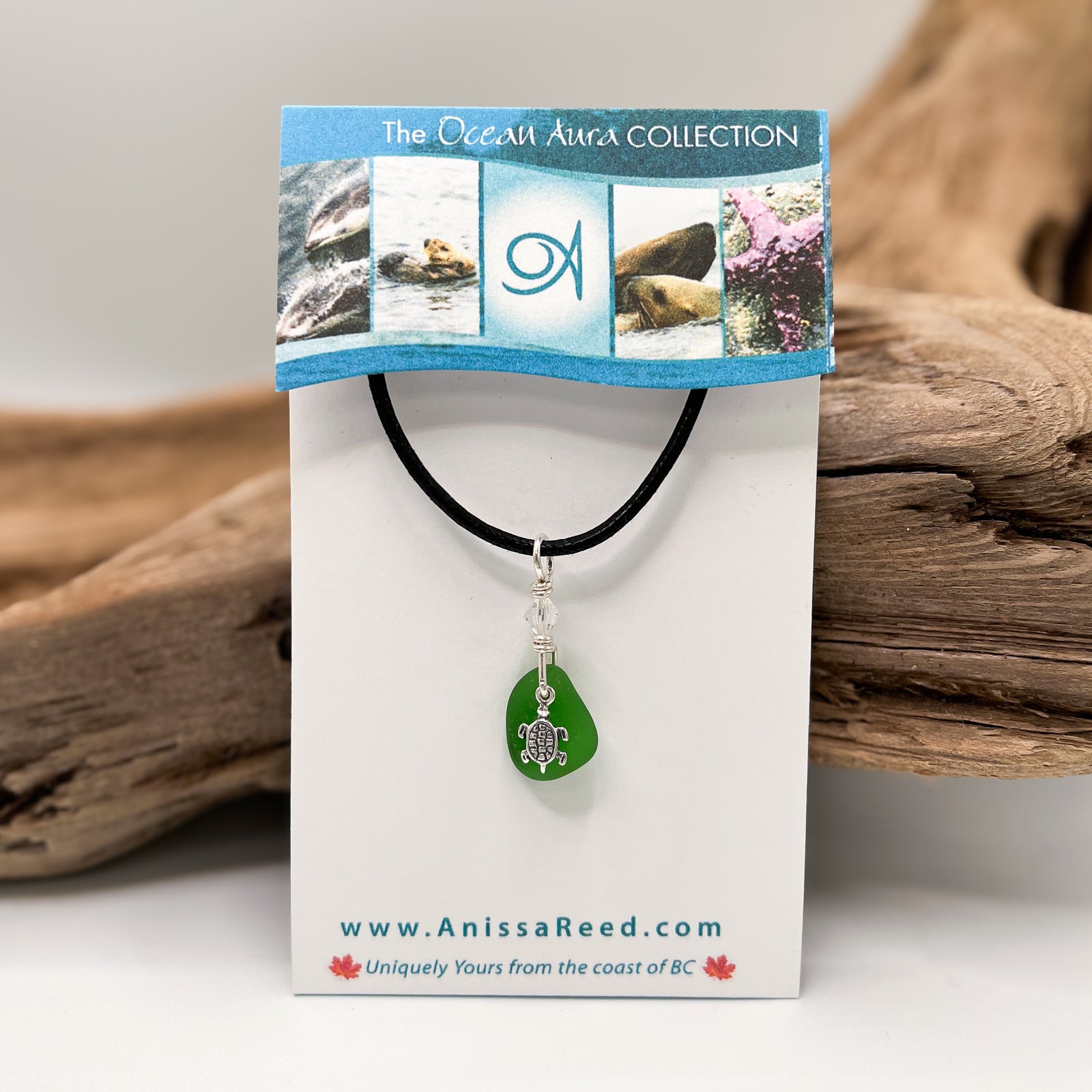 Sea Glass Pendant - Vibrant Green with Turtle Charm