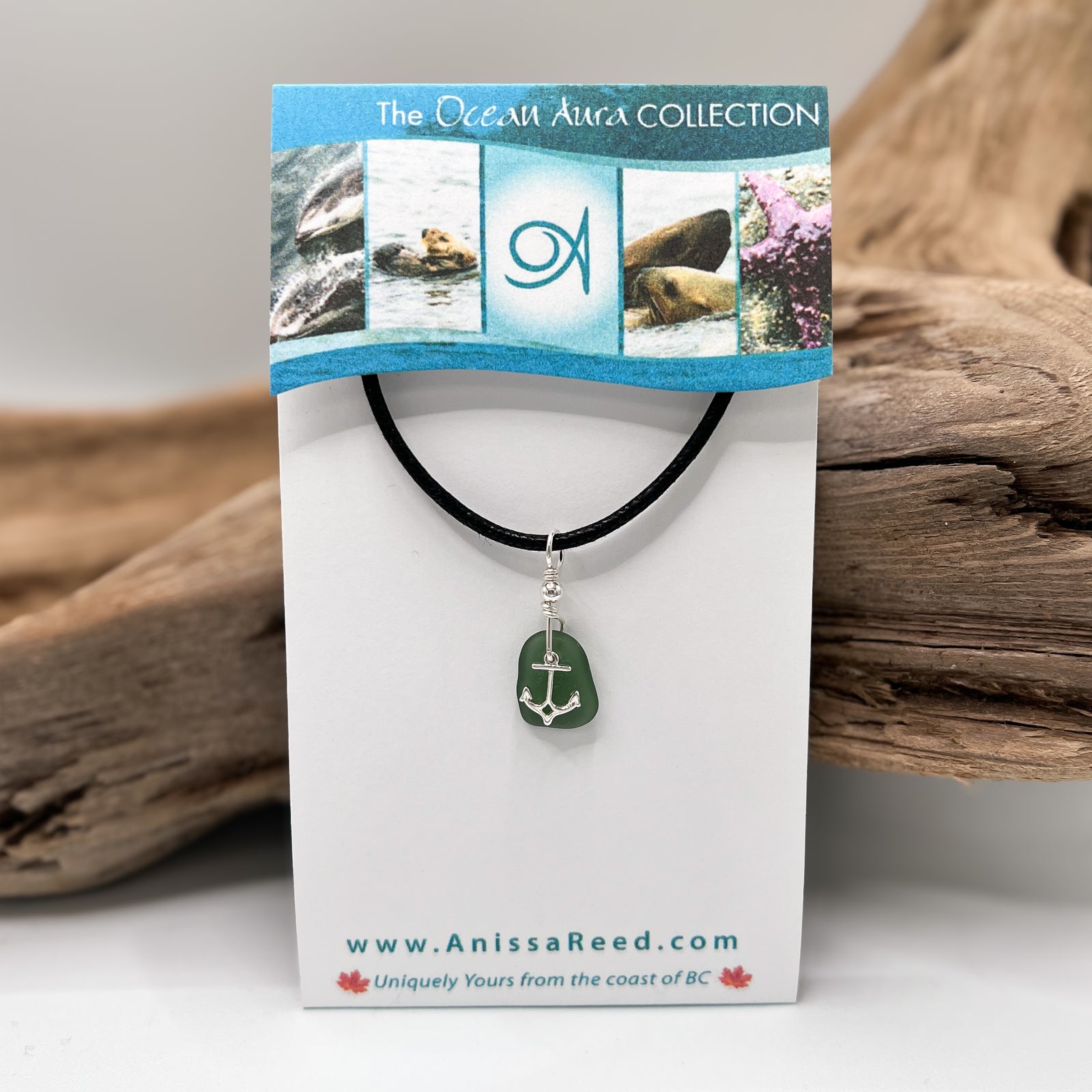 Sea Glass Pendant - Rare Smokey Teal with Anchor Charm